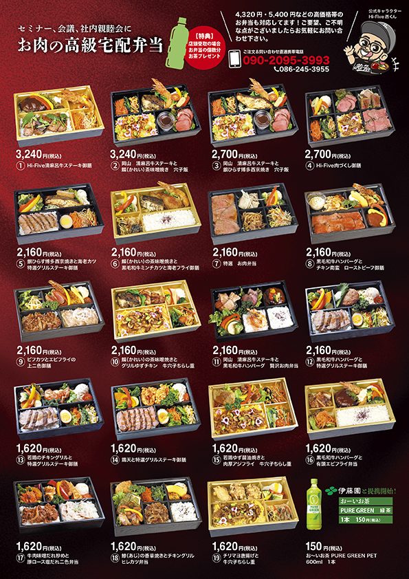 岡山・倉敷エリアを中心に、セミナー・会議・社内懇親会・製薬会社様向け、お肉の高級弁当を宅配しています。